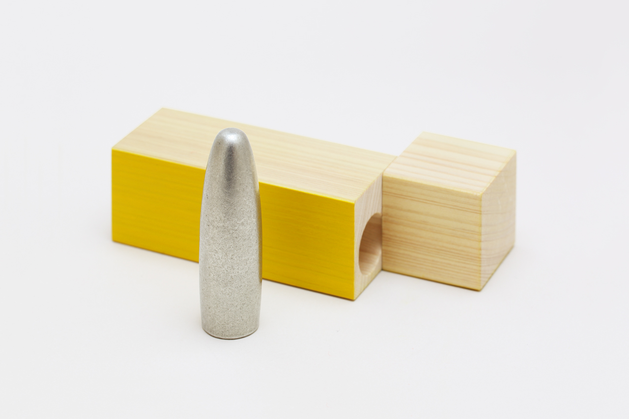 柔らかな曲線を基調に、動的な黄金比に対する日本の比率である静的な白銀比を用いた造形を施すことで、印鑑を推す行為に象徴される「動」と「静」を形状に表現しました。
