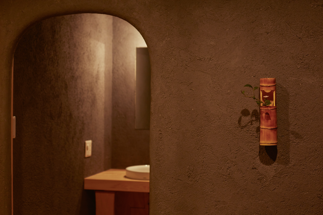 ロゴタイプは、書家・加山幹子氏による指文字で制作。温泉の湯気で曇ったガラスに指で書くという誰もが一度は体験したことのある行為をモチーフに取り入れ、温泉旅館の本質を直感的に感じられる意匠としました。この指文字は、人に寄り添った柔らかさを表現し、心地良さと温かみを宿すロゴデザインとしました。